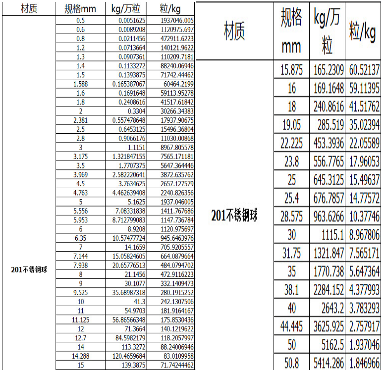 屬于節鎳鋼種,奧氏體型鋼,無磁,具有價格低,性能優。可加工、焊接、鉆孔,硬度HRC≤28。(注意:201不銹鋼球不可用于防銹、防腐要求較高的行業如:海水或酸性物質中)